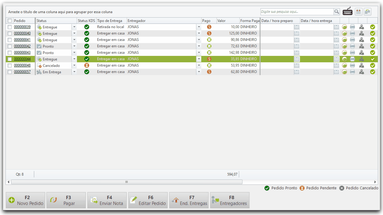 - A medida que os pedidos prontos chegarem no KDS de Entrega / Expedição, toque em Entregue ou pressione F8.