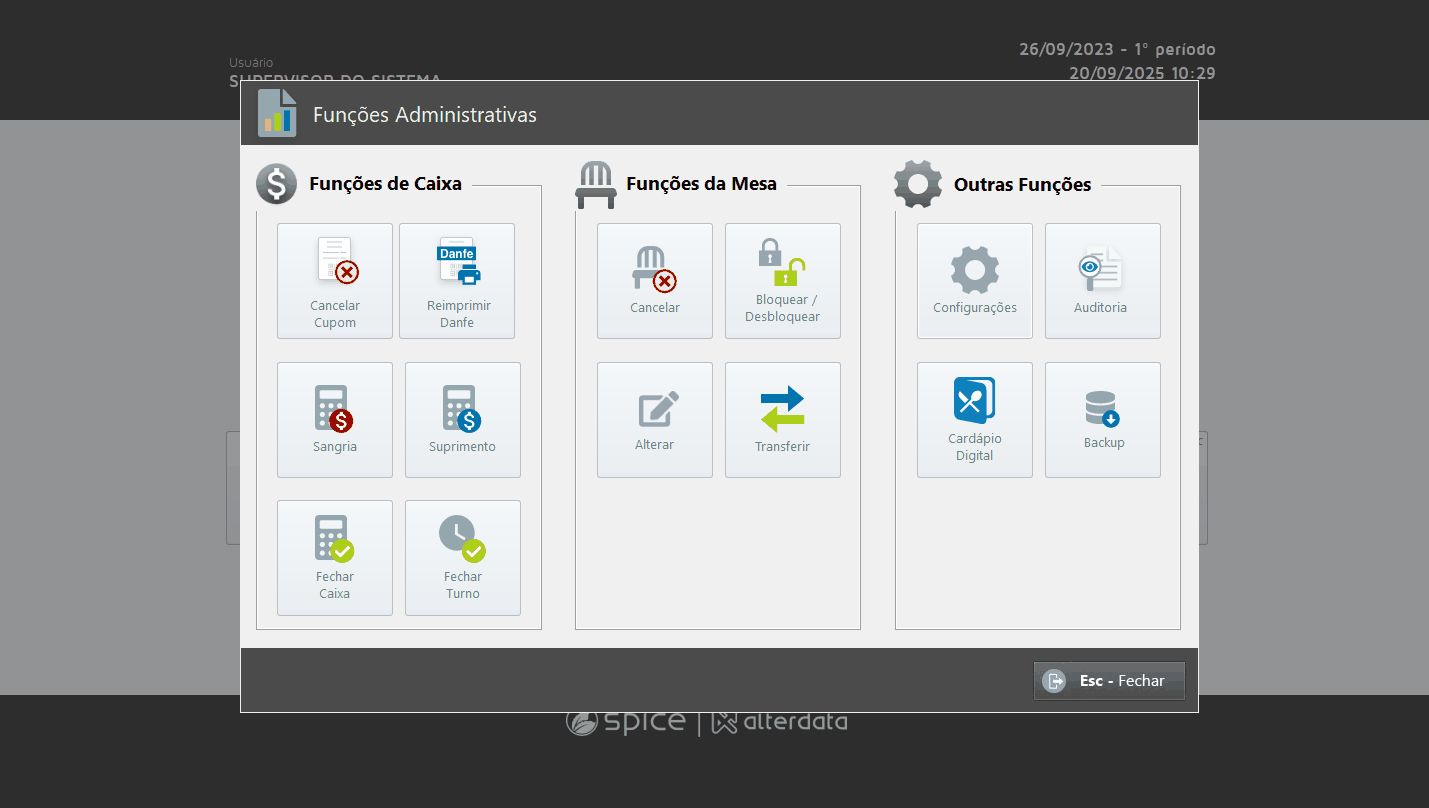 - Acesse o Spice > Funções Administrativas > Configurações > Comanda Alterdata.