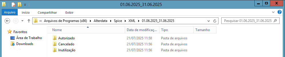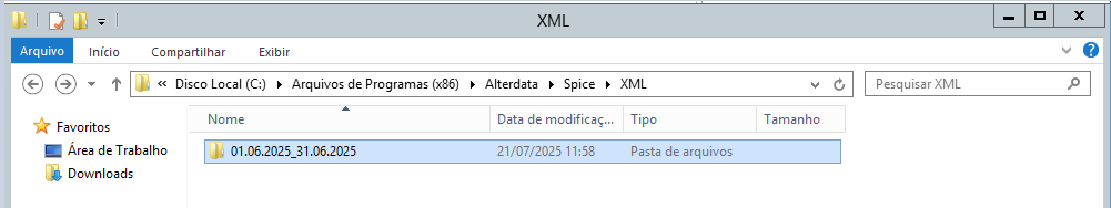 - Defina o diretório onde os arquivos serão salvos. O sistema sugere uma pasta padrão do Spice (C:\Program Files (x86)\Alterdata\Spice\XML), mas você pode personalizar o local para onde for mais prático no seu dia a dia.