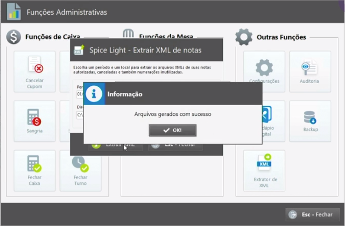 - O sistema informará quando os arquivos forem gerados com sucesso.
