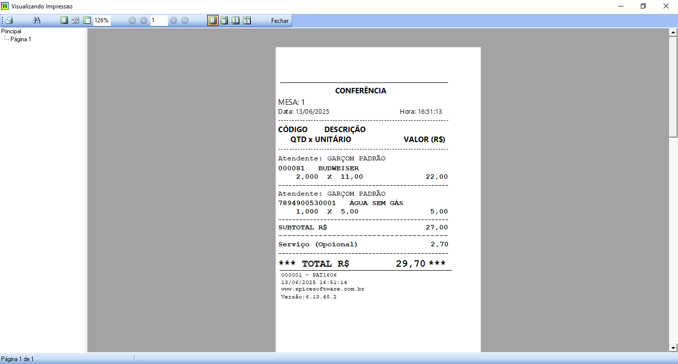 Ao fechar uma comanda no SPICE, uma tela de exibição aparece antes de imprimir. Muitos de nossos clientes preferem que a impressão seja direta, sem essa etapa extra.