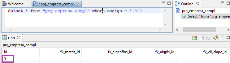 No exemplo abaixo, foi realizado procedimento com a empresa 1910 e o ID retornado na coluna foi o 5.