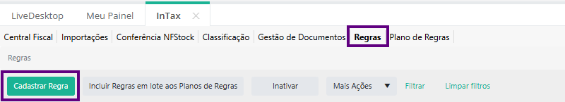 Contexto: Este artigo tem por objetivo demonstrar como cadastras regras no Intax. Regras são necessárias para o funcionamento do Intax, a partir delas serão aplicadas as alterações e validações de dados dos documentos fiscais.