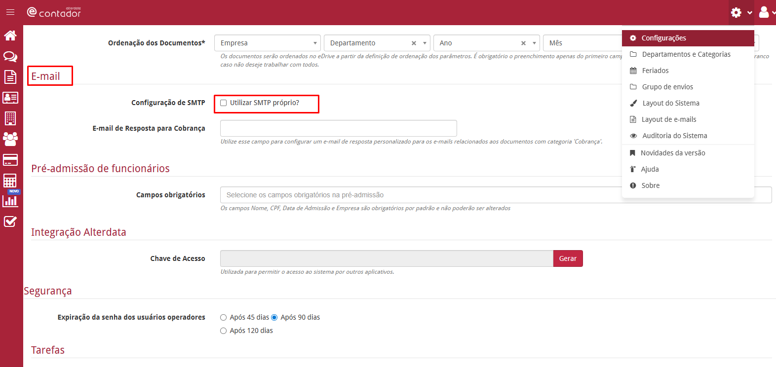As empresas integradas com o econtador usam a configuração de SMTP do econtador, e caso não integre usam as configuração do PHD.