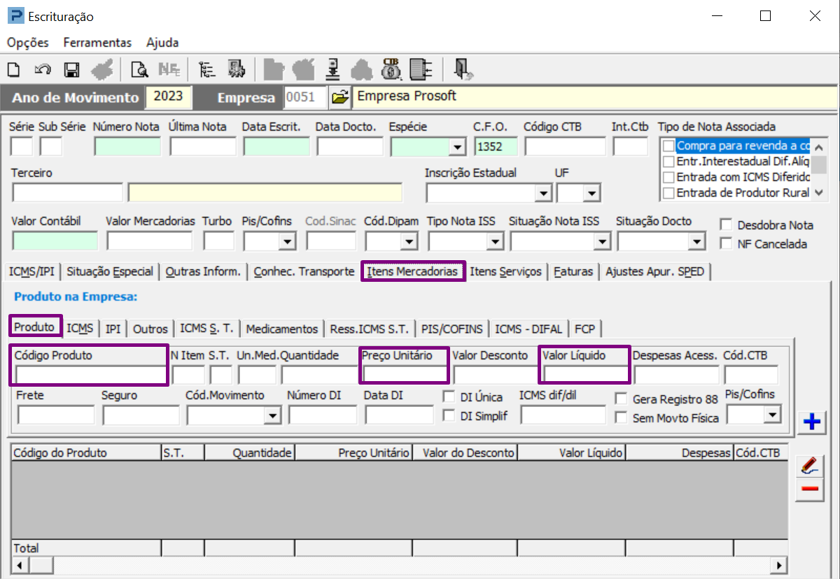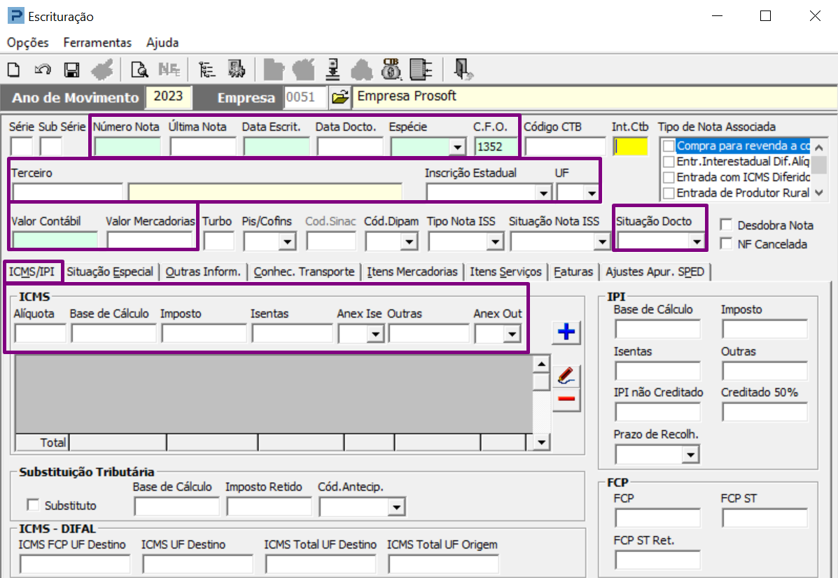 1- Acesse: Fiscal > Documentos de Entrada e Saída > Escrituração